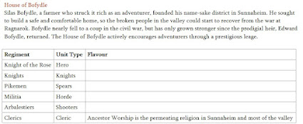 On Jonas' plate are the minor factions, with names and lore, together with suggestions for trooptypes that I will try to balance somewhat into armies.
